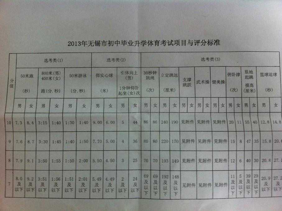 2013年无锡体育中考时间、考点、人数、费用、变化信息汇总