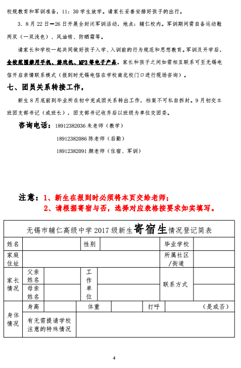 无锡市辅仁高级中学2017级高一新生报到须知(4)